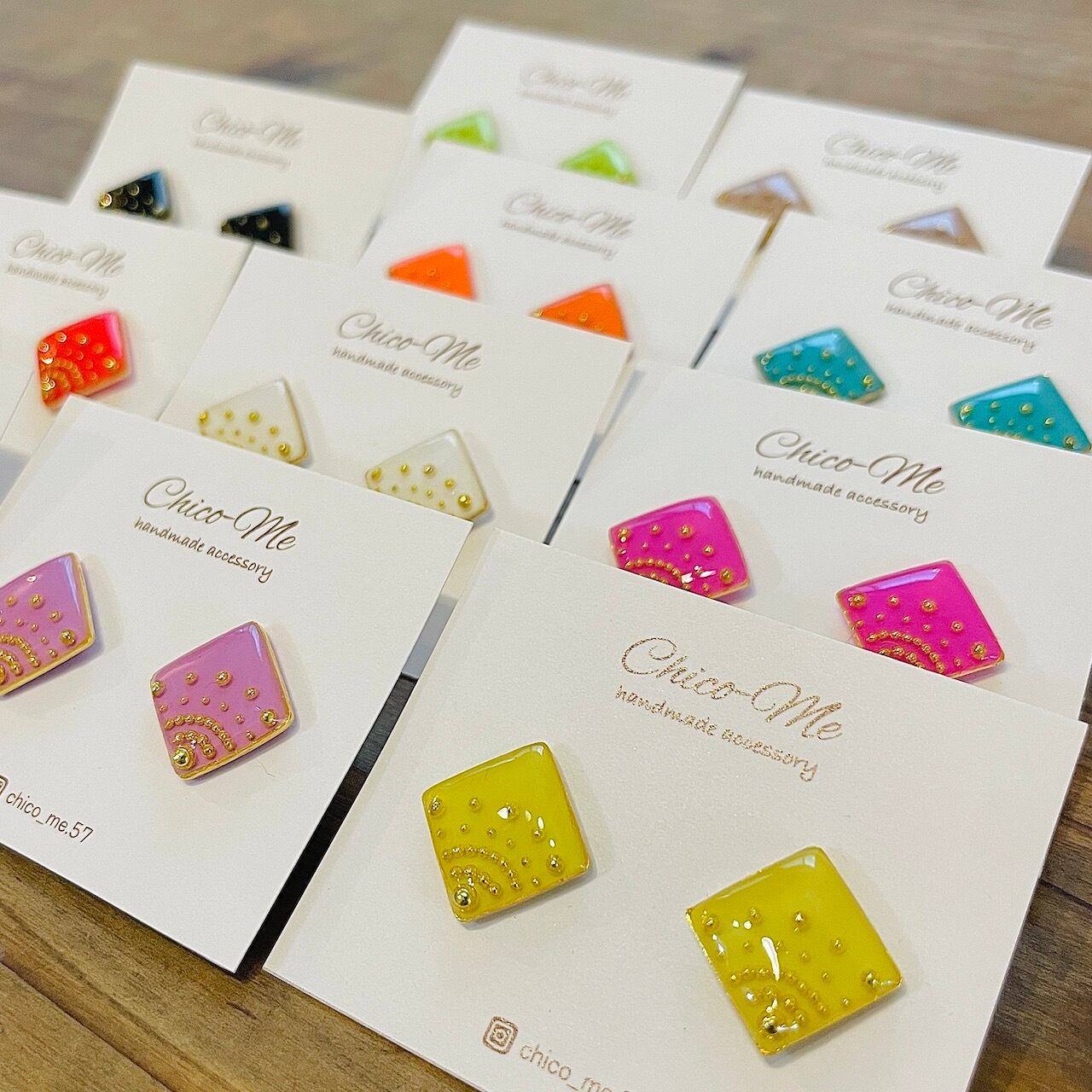 透明の樹脂ピアスとイヤリングをご用意しています。