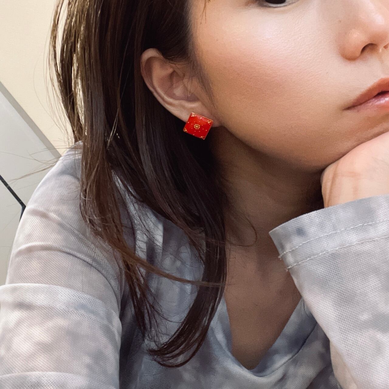 ドットアートのようなピアスを作ってみました。